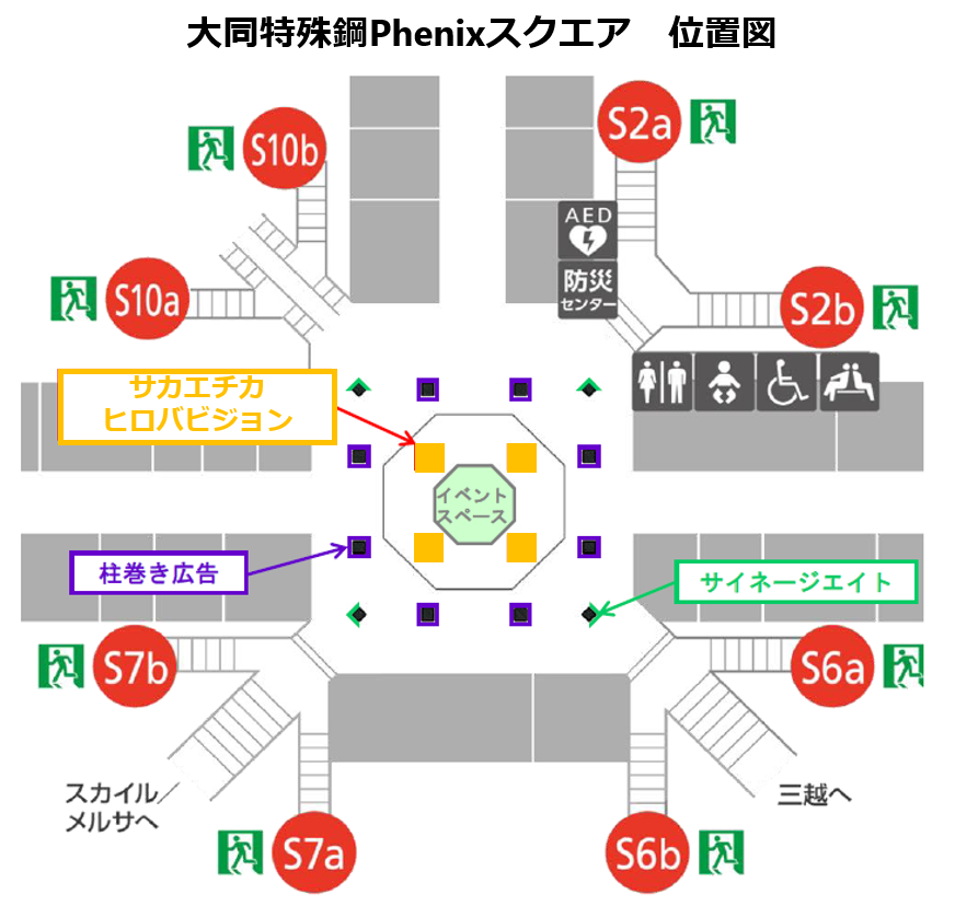大同特殊鋼Phenixスクエア(旧クリスタル広場)の広告メディアについて