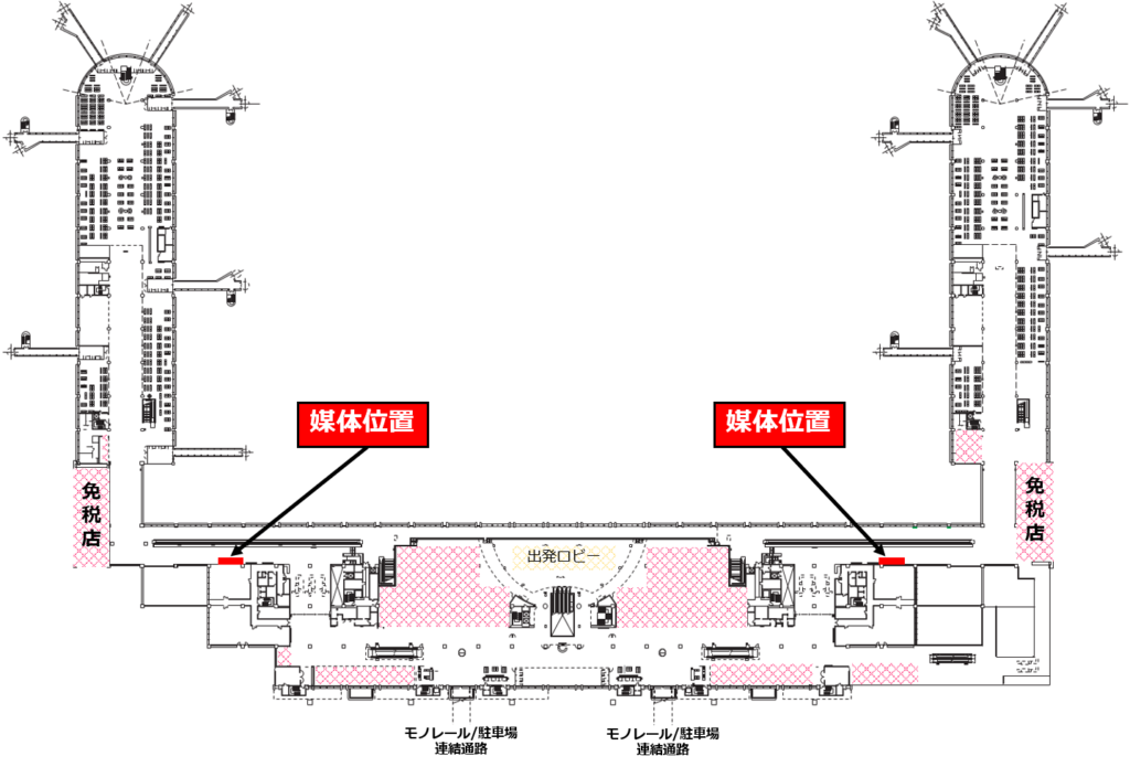 本媒体の最大の特徴は、「国内線の出発客」と「到着客」のどちらからも視認が可能であるという点です。